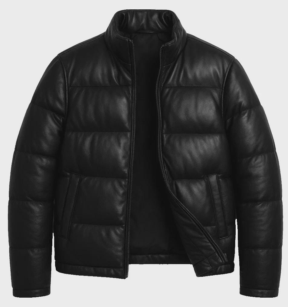 Leather puffer jackets combine insulation and lightweight comfort, making them ideal for colder seasons while maintaining a stylish edge . The timeless black color pairs effortlessly with any outfit, from jeans to formal wear.